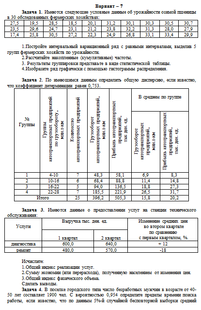 Задача 1. Имеются следующие условные данные об урожайности озимой пшеницы в 30 обследованных фермерских хозяйствах: