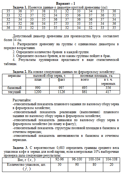 Задача 1. Имеются данные о диаметре круглой древесины (см):